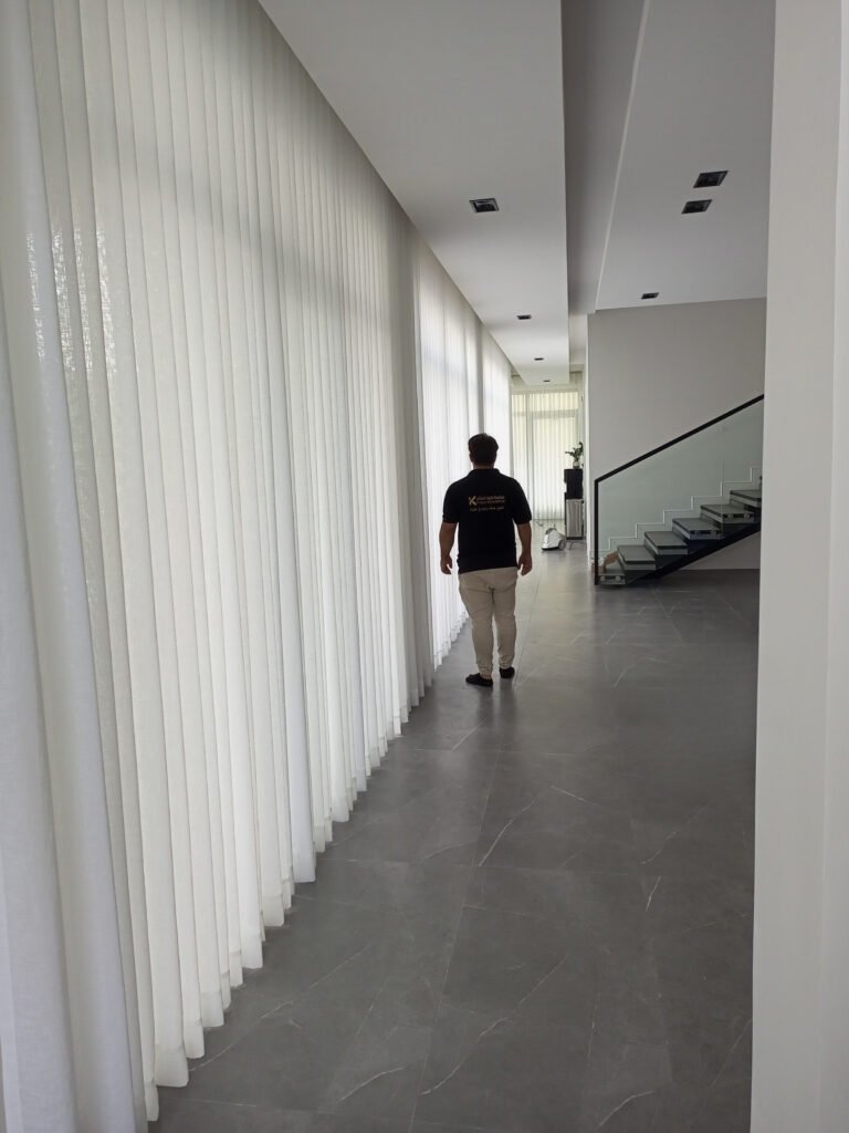 نعمل على تصميم ستائر مخصصة للمنازل، حيث يقوم الفني المختص برفع القياسات في كامل المنزل، لوضع تصميم يناسب مساحة كل شرفة ونافذة، لتكون كل ستارة قطعة فنية في مكانها.